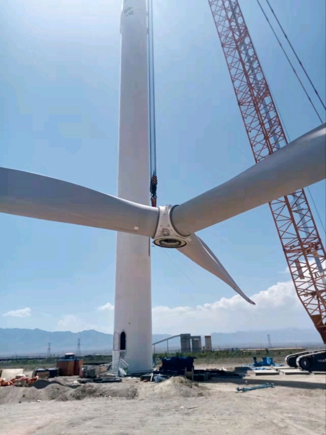 2023年9月9日18时35分,随着调试人员按下启动按钮,E2风力发电机组的叶轮迎风转动缓缓划出优美的弧线!新疆风能公司达坂城风电场升级改造项目首台机组安全、顺利并入电网,这也是新疆首批“以大代小”升级改造项目首台机组并网发电,具有里程碑意义,不仅为疆内老旧风电场改造提供成功经验,同时也为电网注入绿色动能。