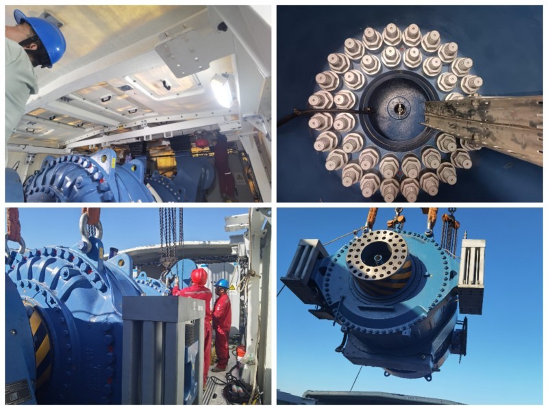 5月正值春季大风频发,这给E2机组齿轮箱恢复工作带来巨大挑战。面对严峻形势,风电场积极应对,不断优化工作方案,精心调整吊装策略,并成立专项工作小组。面对时间紧、任务重等诸多不利条件,小组人员严阵以待、全力以赴投入到更换工作中。吊装过程中,工作人员紧盯风速变化,精准抓住风速6米/秒以下的短暂窗口期,争分夺秒提前拆卸齿轮箱附件。地面与机舱作业人员密切配合,严格把控每一个关键环节。从齿轮箱连接油管、传感器、主轴连接螺栓,到齿轮箱弹性支撑的安装工艺,每一步操作都细致入微、严谨规范。经过运维人员12小时的艰苦奋战,E2齿轮箱吊装更换工作顺利完成。