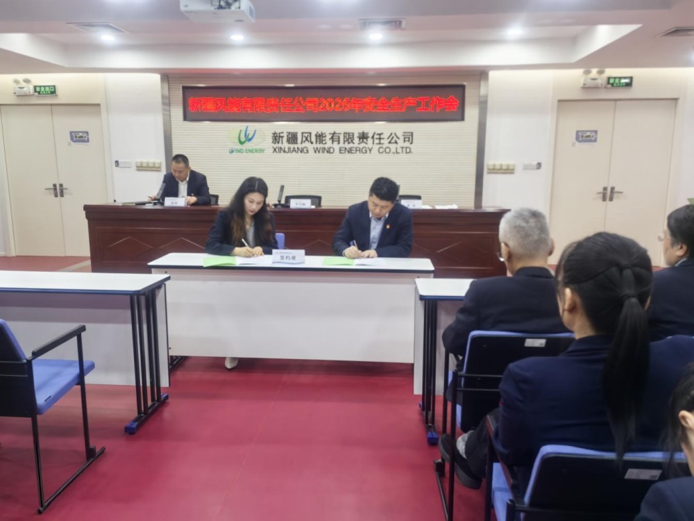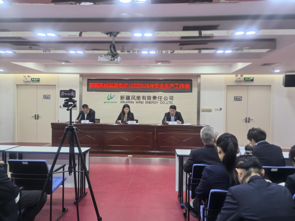 (通讯员/摄影 熊世凤)近日,新疆风能有限责任公司以“现场+视频”形式召开2026年安全生产工作会议。会议深入学习贯彻习近平总书记关于安全生产重要论述,落实新疆能源集团相关会议精神,全面总结2025年工作成效,分析当前风险挑战,部署2026年重点任务,为安全发展筑牢根基。公司党委副书记、副总经理黄乐主持会议,党委副书记、总经理李雪梅,党委委员、副总经理满强出席会议;中层及以上管理人员、本部员工在主会场参会,各场站人员通过视频形式同步参会。