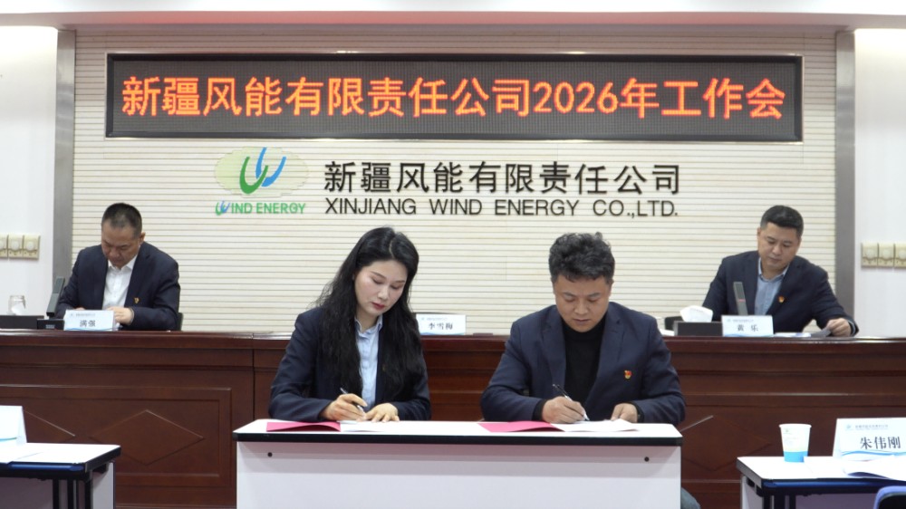 (通讯员/摄影 朱鑫鑫)新春启幕,万象更新,奋斗正当时。3月13日,新疆风能有限责任公司隆重召开2026年工作会议,全面总结2025年工作成效,深度研判当前发展形势,系统部署2026年重点工作,签订年度目标责任书,动员全体干部职工统一思想、凝聚共识、真抓实干,以昂扬姿态推动公司高质量发展再上新台阶。党委副书记、总经理李雪梅,党委委员、副总经理满强,高级管理人员、中层干部及职工代表参加会议,党委副书记、副总经理黄乐主持会议。